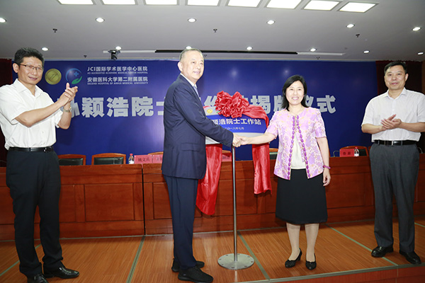 7月1日下午,时值中国共产党成立97周年之际,中国工程院院士孙颖浩工作站正式落户我校二附院。著名泌尿外科专家、海军军医大学校长、中国工程院院士孙颖浩和我校校长曹云霞出席揭牌仪式,并共同为孙颖浩院士工作站揭牌。