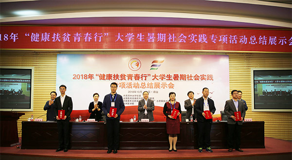 10月25日,2018年“健康扶贫青春行”全国大学生暑期社会实践专项活动总结展示会在山东烟台滨州医学院举行。我校第二临床医学院暑期三下乡项目——“传善承爱”大学生遗体器官捐献宣讲团获得优秀团队称号。