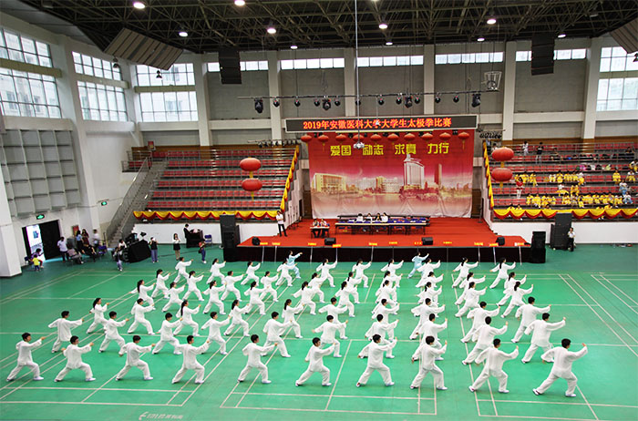 5月25日下午,我校2019年太极拳比赛在校本部体育馆举办。校党委书记李俊出席开幕式并宣布比赛开始。校党委副书记刘群英现场观摩比赛。