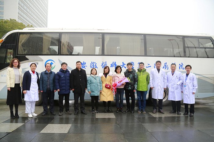 出征前,医院领导和医护员工为队员们送行,叮嘱大家一定要做好个人防护出色完成任务,展现安医大的风采。