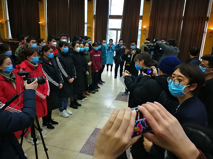 “今天没让家人来送我,我怕我兜不住,哭出来,让他们不放心。”说到这,重症监护室护士长马宝府哽咽了:“我们只是做了千千万万医务工作者最想做的、最应该做的事,我们一定会平安归来。”