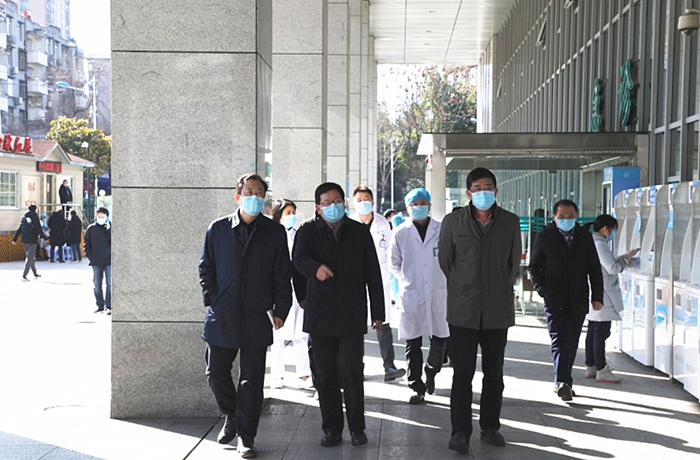 2月17日下午,校党委书记顾家山一行,到第一附属医院调研督导新冠肺炎防治工作。该院党委书记金宗祥、院长梁朝朝陪同调研。