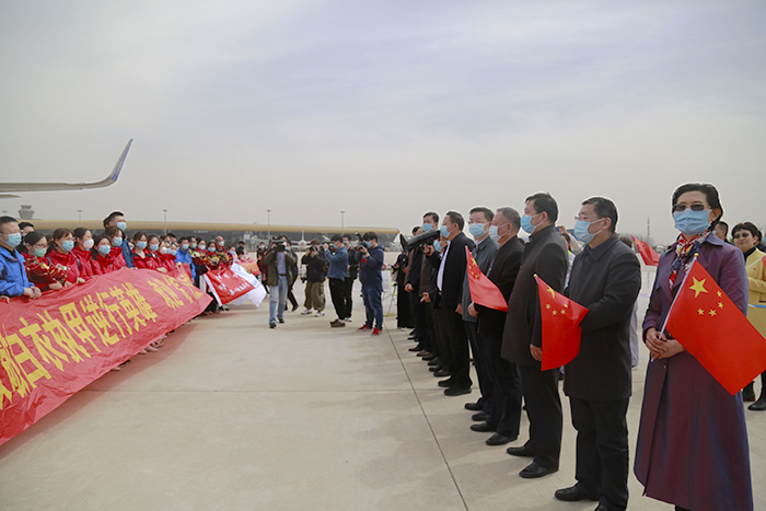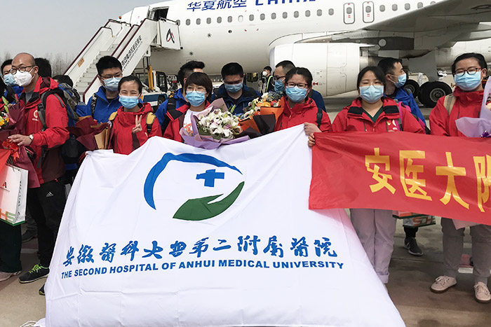 319日上午,安徽省第二批、第八批支援湖北医疗队共130名队员圆满完成支援任务,搭乘专机平安返回合肥。我校各直属附属医院15名战“疫”英雄不畏艰险、不负重托,在圆满完成支援任务后,随队返回。省卫健委副主任杜昌智、崔礼军带队前往机场迎接英雄凯旋。我校各直属附属医院相关负责人在机场迎接队员回家。