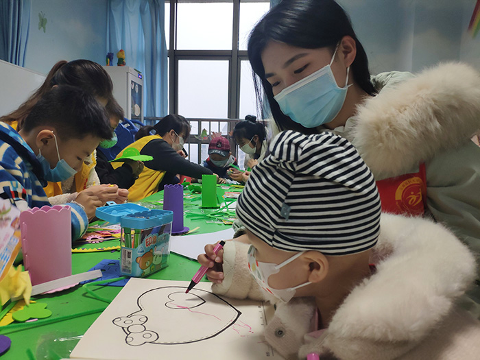 他们始终坚持“青春向党,为爱传递”的初心,持续开展学雷锋活动,将关爱特殊儿童作为常态化特色服务项目,与合肥市经开区梦之桥康复中心、安医大二附院儿科一病区长期合作,志愿服务队多次前往经开区“梦之桥”儿童康复中心和二附院进行陪伴自闭症和白血病儿童活动。队员们用微笑和耐心,悉心呵护着这一群星星般的孩子们,陪他们做游戏、制作手工,互动交流等,为他们送去温暖和关怀。志愿者们的到来给孩子们内心打开了一个窗口,帮助他们更好地适应外界环境、让星星的孩子们从此不在孤独。