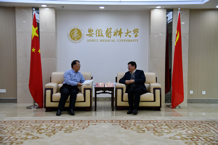 参观校史陈列室时,邬大光一行从校史沿革、办学传统、事业发展等多个方面,全方位了解了我校98年来的建设发展历程及所取得的重要成就,饶有兴趣地了解了我校是国人创办的第一所医科大学、内迁安徽怀远等具体情况。他着重围绕史料收集、史实溯源、实地考察等问题进行深入交流,着重研究探讨了我校建校初创、校址变迁以及内迁安徽怀远、合肥等地的办学情况,就如何厘清办学历史、凝练“内迁精神”、建设大学文化、展示文化底蕴与办学成就等方面提出了许多真知灼见。