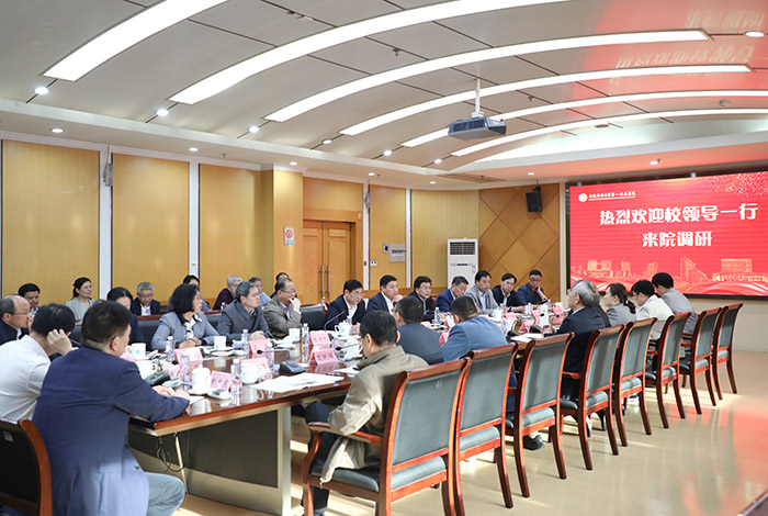 4月18日下午,校长翁建平前往第一附属医院开展工作调研,听取医院工作汇报,并与医院领导班子及专家座谈交流。校党委副书记、一附院党委书记谢瑞瑾代表医院作表态发言。副校长余永强参加调研。