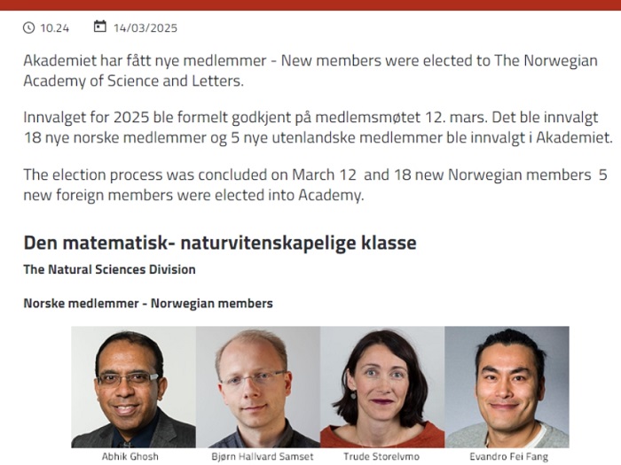 3月12日,挪威科学与文学院(The Norwegian Academy of Science and Letters)公布了2025年新当选的院士名单。我校公共卫生学院2005届预防医学专业杰出校友、挪威奥斯陆大学和阿克斯胡斯大学医院方飞(Evandro Fei Fang-Stavem)教授荣膺院士,成为该院年度新增院士之一。