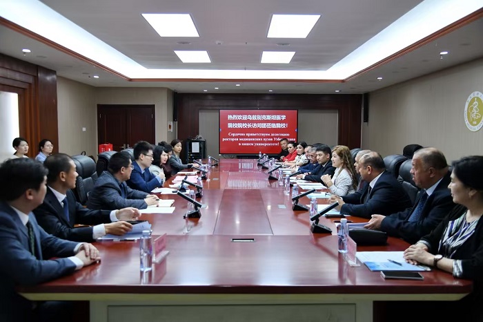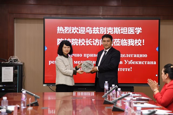 4月17日下午,乌兹别克斯坦高等教育、科学与创新部职业教育体系发展司副司长萨基波夫·奥伊别克·库利耶维奇,率领医学院校长访问团一行十余人到我校进行交流访问。副校长洪静芳会见来访客人。