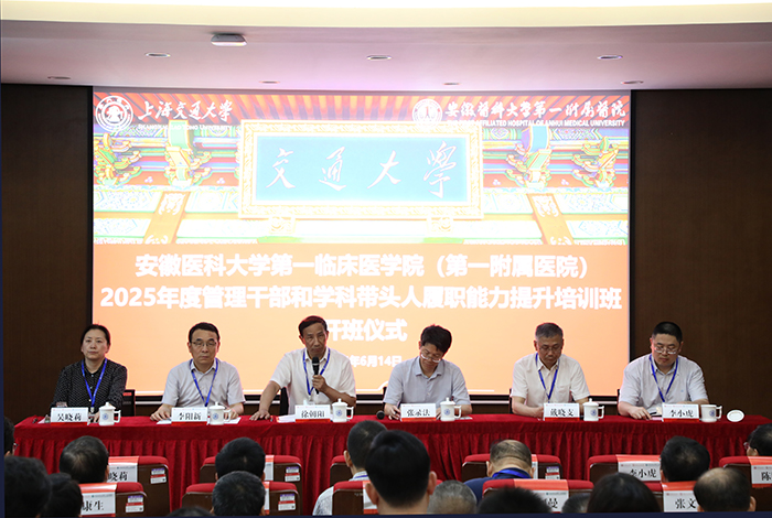 6月14日至17日,第一附属医院2025年度管理干部和学科带头人履职能力提升培训班在上海交通大学举办。校党委副书记、一附院党委书记徐朝阳等院领导出席开班式。